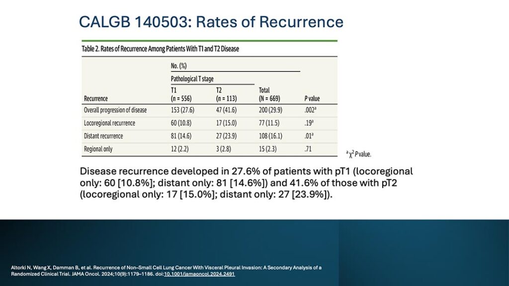- 1. Altorki N, Wang X, Damman B, et al. Recurrence of Non–Small Cell Lung Cancer With Visceral Pleural Invasion: A Secondary Analysis of a Randomized Clinical Trial. JAMA Oncol. 2024;10(9):1179–1186. doi: 10.1001/jamaoncol.2024.2491
